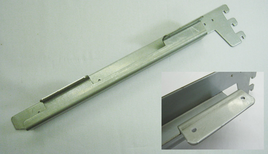 | 用途 | ショーケースの製品を陳列する棚フレームを固 定する両サイドの受けの部品 |
