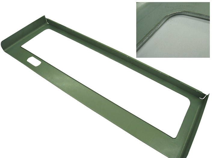 | 用途 | 缶・ペット自動販売機の正面上部に位置し、商 品サンプルが中にある扉の部品 |